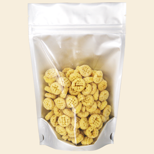 包裝不易變形,挺性好,拉鍊設計相當方便收納。一半鋁箔一半透明的設計可以讓顧客一目了然產品內容,韌性強,密合度佳。能長時間維持內容物的新鮮。適用範圍: 咖啡、茶類、各式乾式食品以及生活用品包裝。使用在烘焙咖啡豆的包裝可加裝透氣閥,讓袋內的多餘氣體排出,更能保持新鮮。